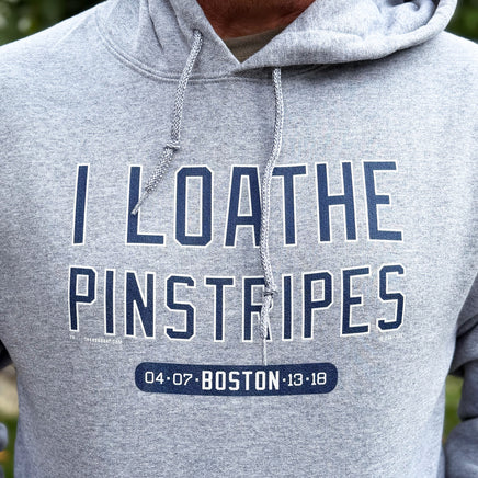 Back by popular demand, here it is: I Loathe Pinstripes. Now, with more Red Sox World Series wins! This one is a toasty hoodie! Tell the world how you feel, all year long!